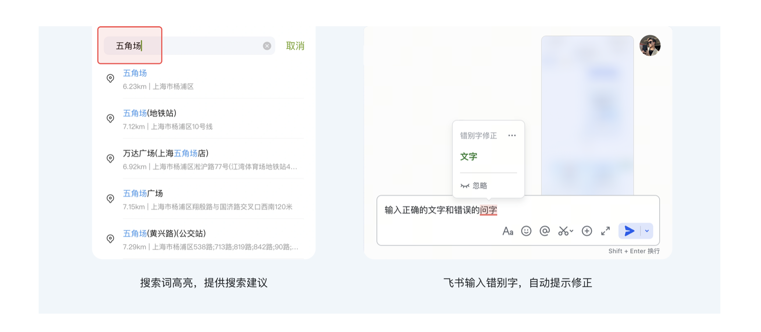 • 飛書輸入文字時,打錯 “公司” 為 “公同”,會自動彈出 “是否修正為‘公司’” 的提示;